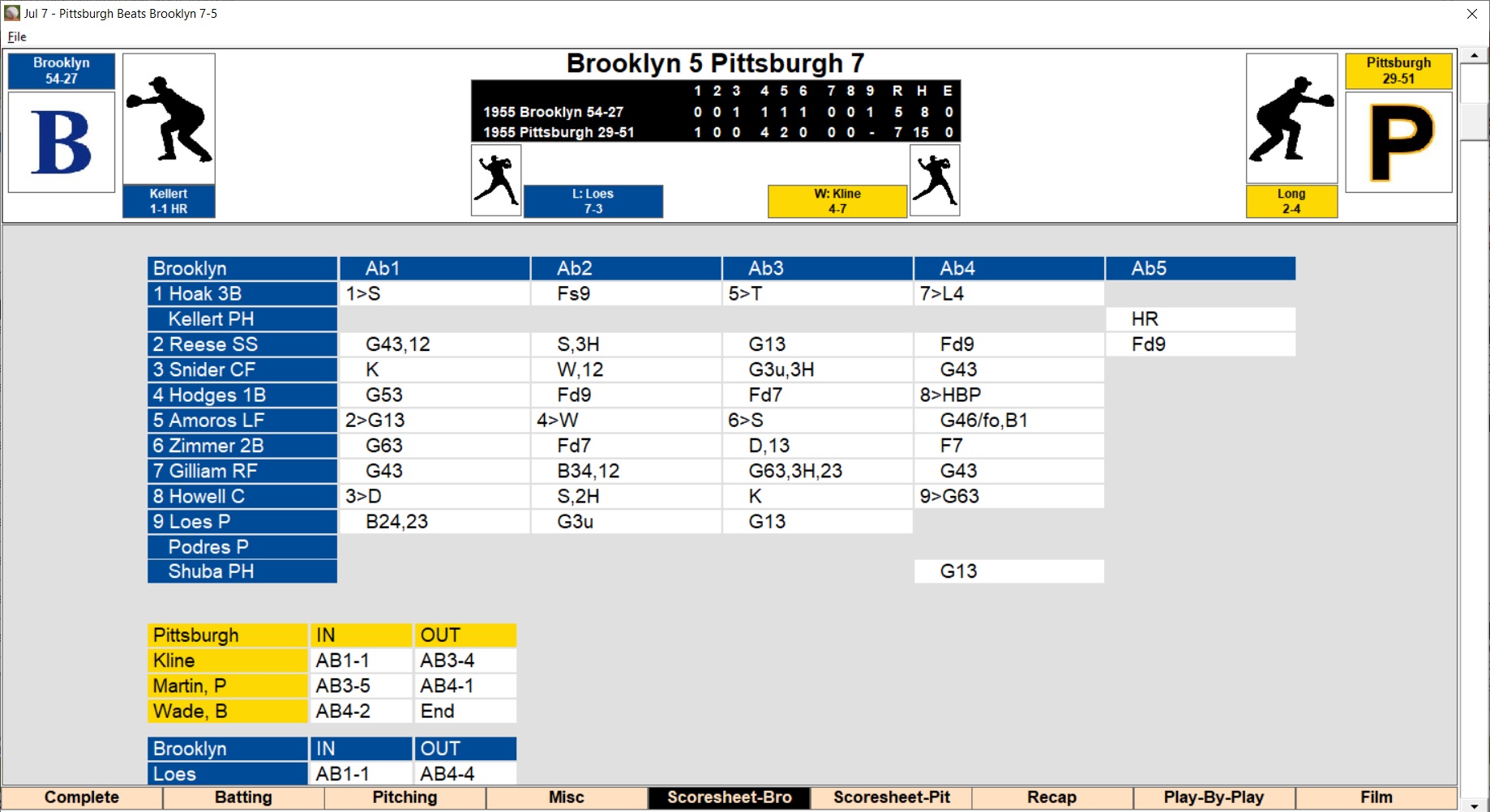 button to send the game’s data file to the league statistician. You can even