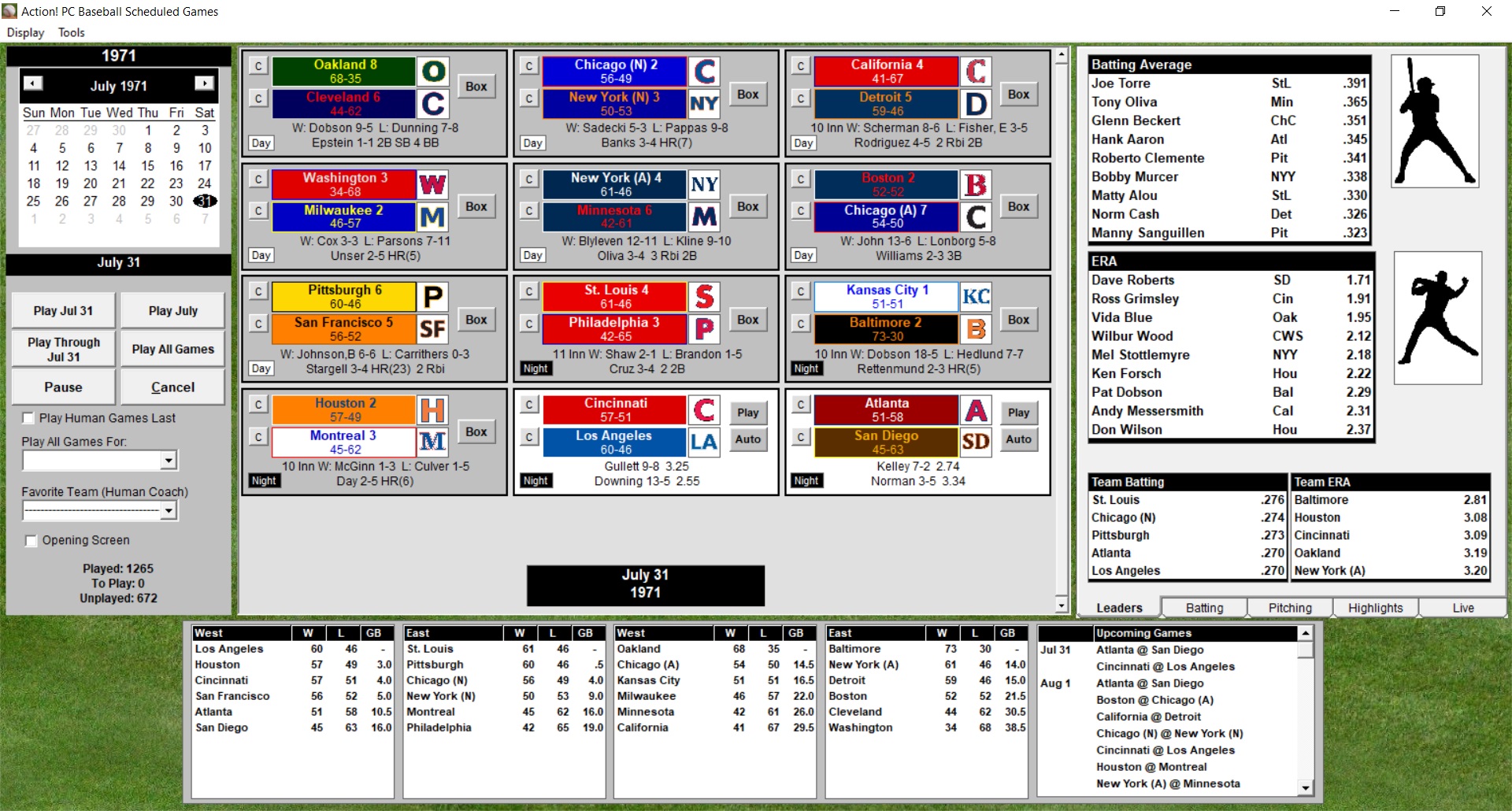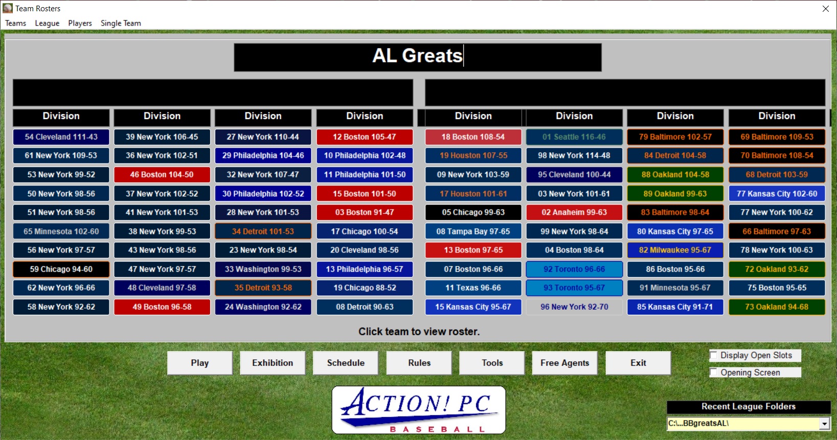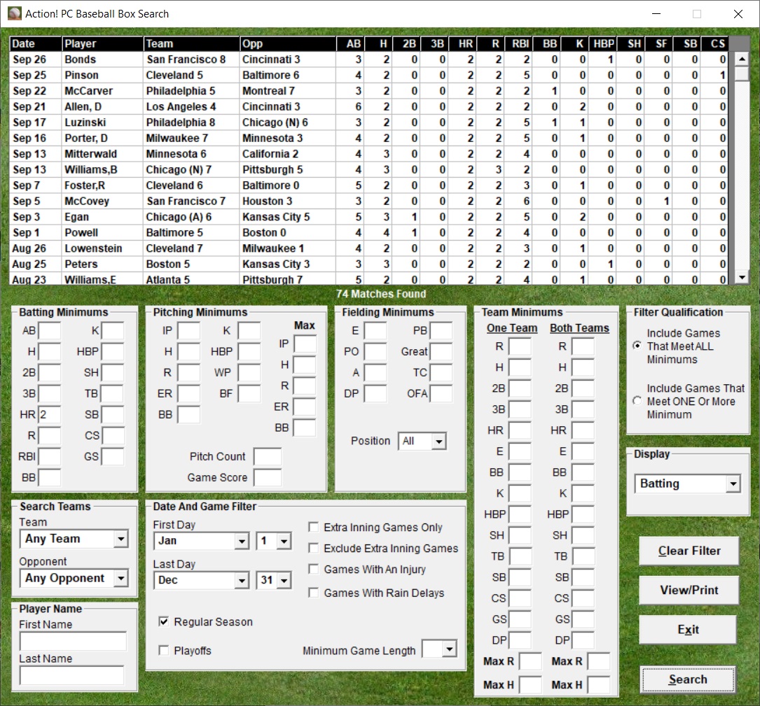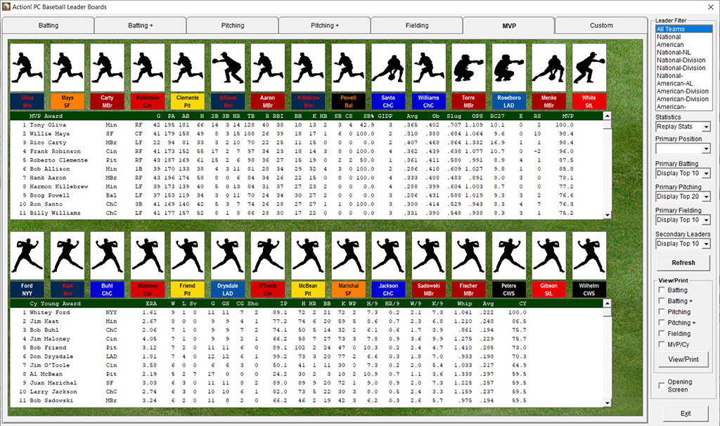 customized statistical categories. Action! PC Baseball Leader Boards