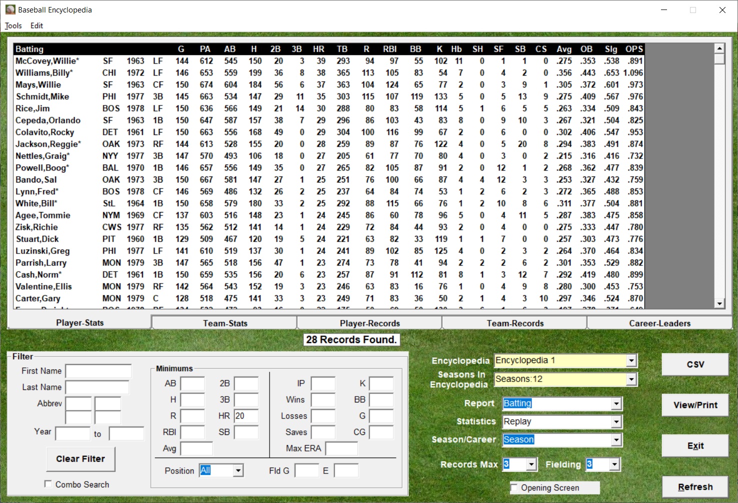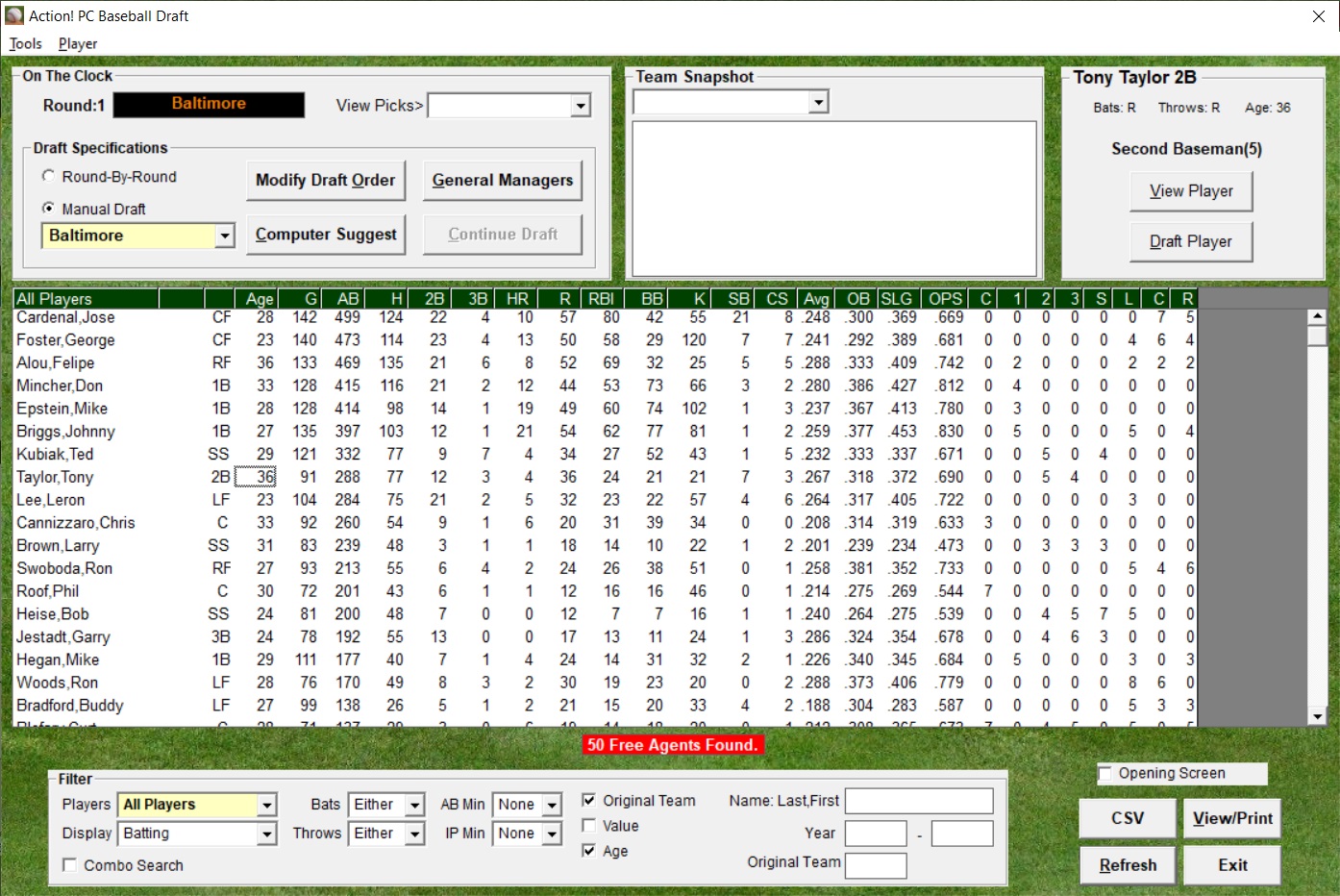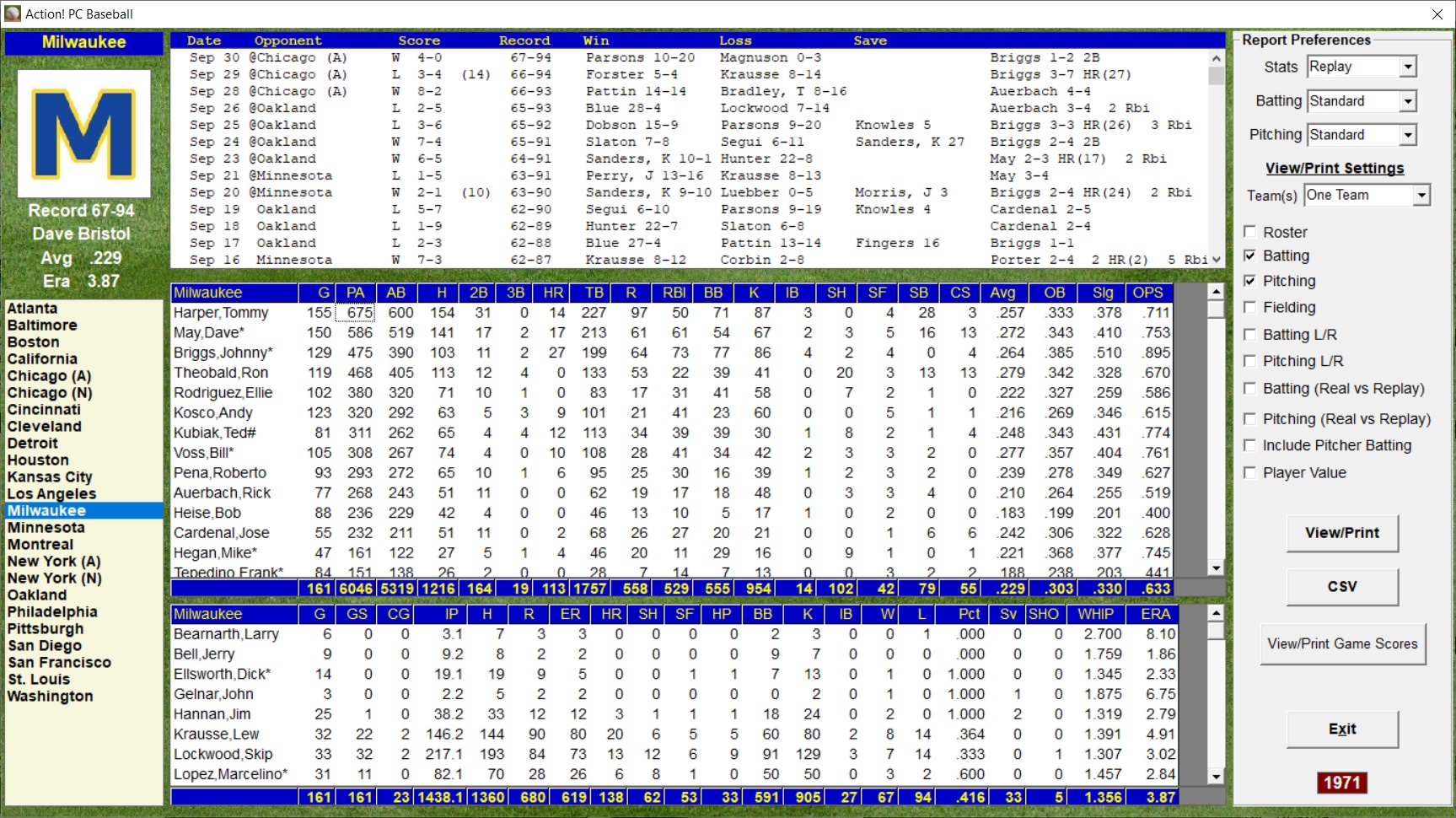 Action! PC Baseball offers an extensive number of league and team reports.