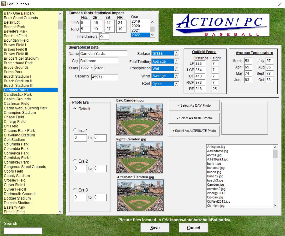 unique element of Action! PC Baseball is the Era tool. From 1876 to present,