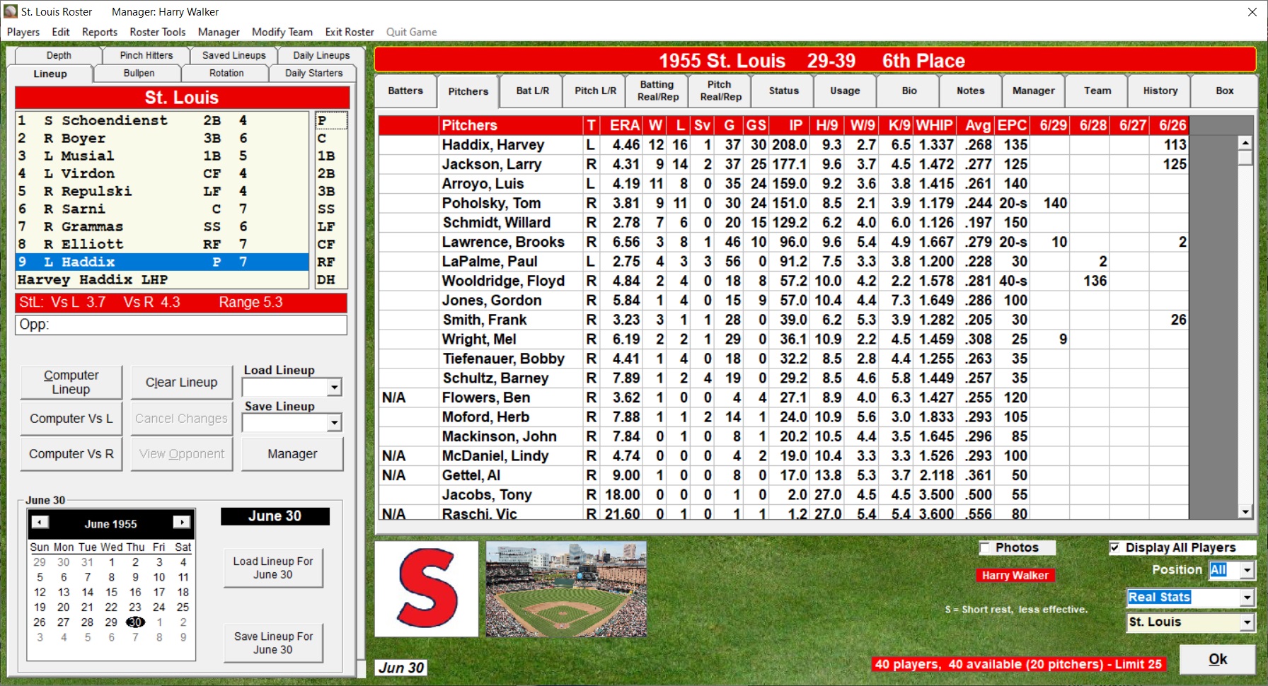 Program a lineup and starting pitcher for every game if you wish.